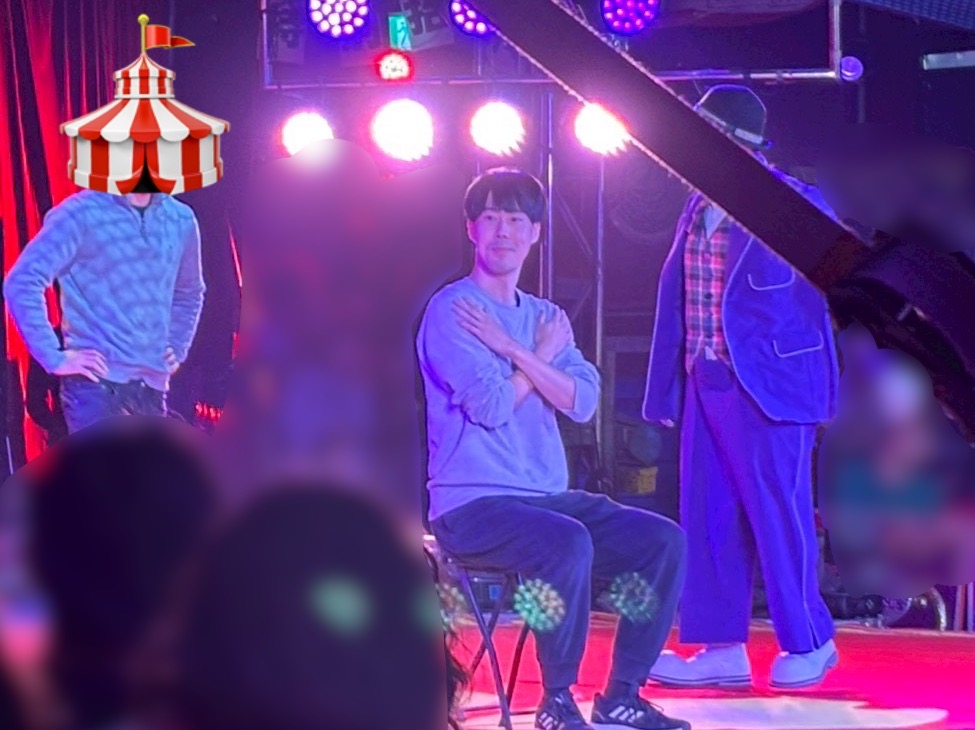 公演の最中に、コラソンのスタッフが他のお客さんと一緒にピエロに連れ去られ、壇上で一緒にパフォーマンスを行いました☺️