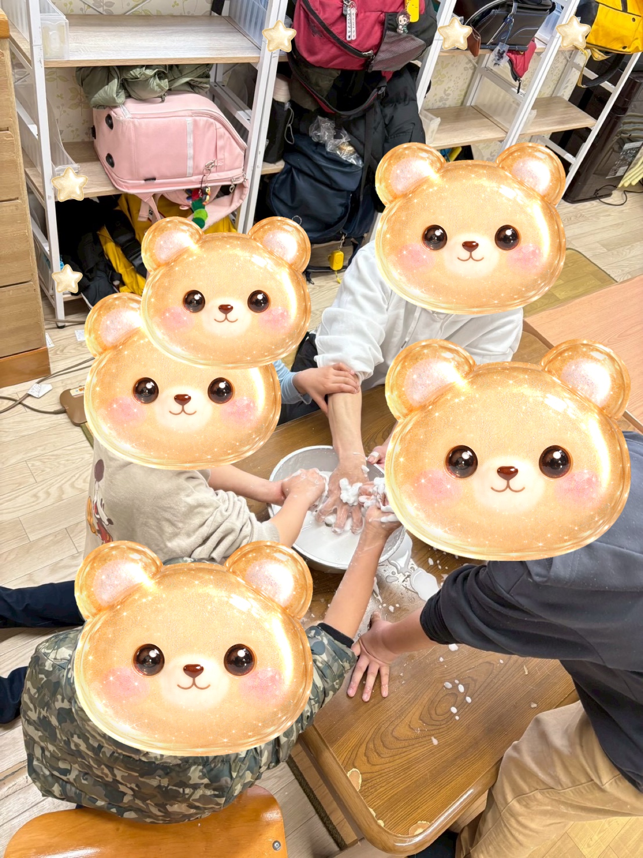 実験をしながら、感触あそびもでき、時間ギリギリまでみんなで楽しく遊ぶことができました!