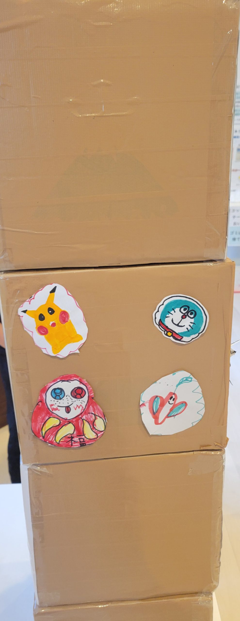 完成した絵を使って、ダンボールで作った大きなだるま落としを制作!