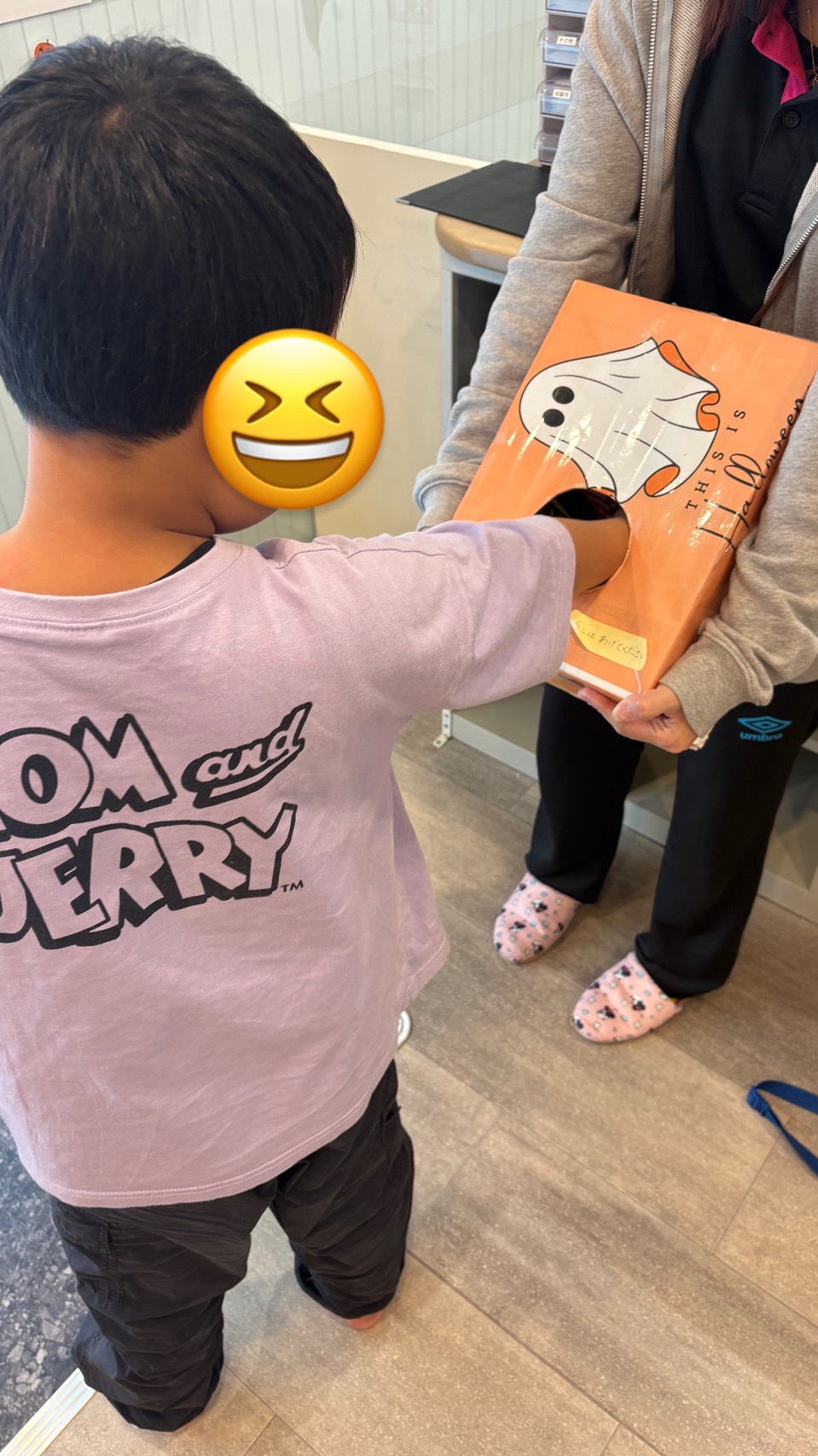 みんな一生懸命に手を広げてたくさんのお菓子をつかんでくれていました😊