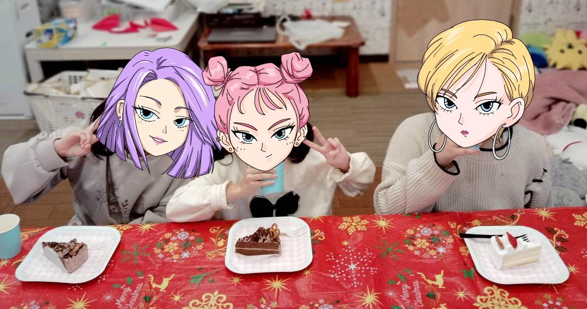 ジュースを持って乾杯したら、ケーキをペロリ- ̗̀ 🍰 ̖́-